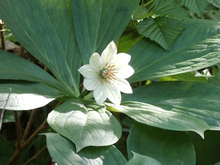 今回の山行での収穫は、ものすごくたくさんキヌガサソウが見られたことと、とっても高い山から初めて日本海を見下ろせたこと。だいたい私ら視界がよくない時にばかり登るから。それでも、高い山の上から見下ろしているはずなのに、水平線がほかの山の頂よりも上に見えたのは感動でした。だぶん、だけど、佐渡も見えたわよ。