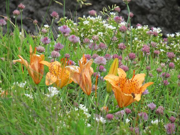 岩場に咲くスカシユリ。さすがイワユリの呼び名とおり。