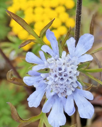 下の写真はイワインチンを背景にマツムシソウです。