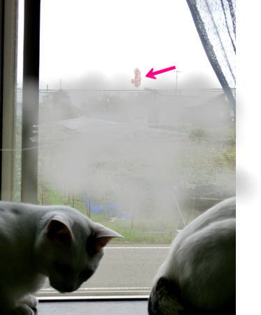 こいつがいい風をうけて、見事に飛ぶもんだから、八と九が気にして気にして、窓の外に釘づけです。