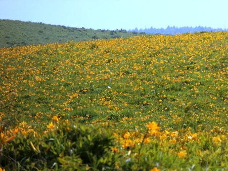 ただ、ニッコウキスゲだけは圧巻で、斜面が黄色く染まって見えるほど咲いていました。