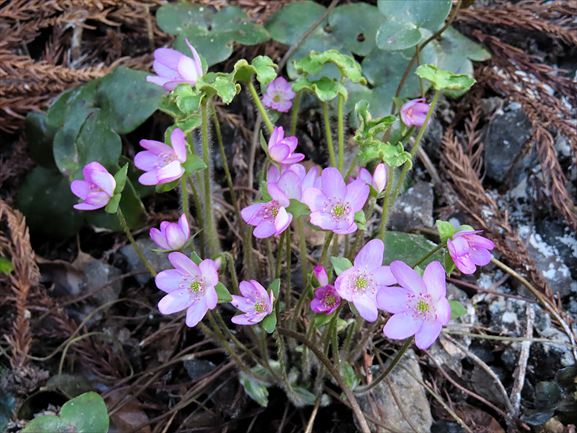 オオミスミソウ。まだ咲き始めだが、すでに株で開花しているものも。