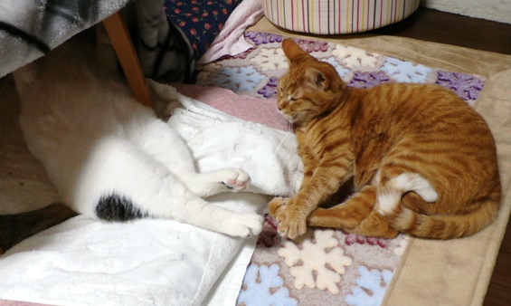 ムチャとミユキのきょうだいは見事に安定したへそ天で寝てました。