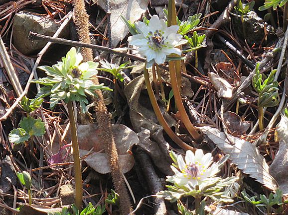 セツブンソウはほぼ同じ形で白い色の花だけなので、雪割草よりは楽しくはないんですが、それでも八重咲を探したり黄色っぽいものを探したりできました。
