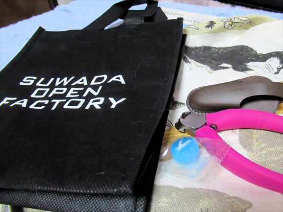 前々から豆ちゃんの爪が厚くなって、普通のペット用の爪切りでは怖くて切れない状態なので、全国的に有名なニッパー状の爪切りのスワダでペット用が売っていると知っていたので、それを購入するためにオープンファクトリーに行ってきたんです。