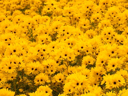 黄色い花がみんなこっちを向いているのは、本当に気分が高揚します。こんな笑いたくなる図は、津南のヒマワリ畑以来です。
