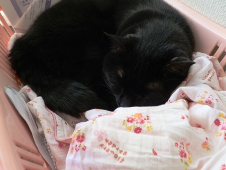 さんざんムチャのことを書いておきながら、写真はミユキちゃん。脱衣かごの中で安眠中です。