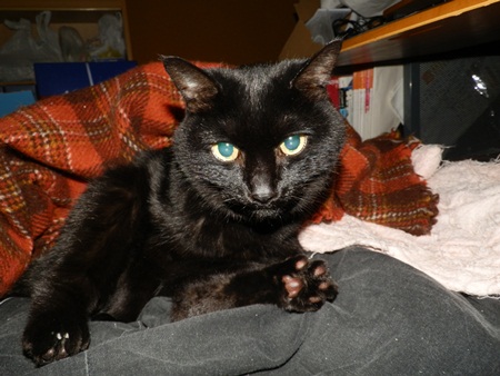 ストロボつけないと、ミユキってばほぼ真っ黒で詳細が分からなくなっちゃうんだけど、ストロボたくと瞳が緑に反射しちゃうのよね~。