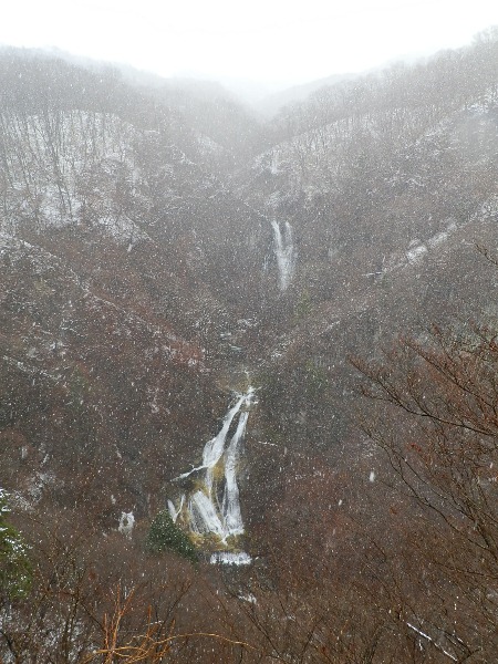 華厳の滝、霧降の滝という百選の滝を2本、あとは裏見の滝と寂光の滝を見ましたが、全部雪の中。写真、ざっと見たんですが、とにかく雪に邪魔されてロクな写真がありません。