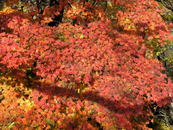 山頂付近はこんなにモミジがあったんだ、と思うくらいにモミジだらけで、見事に紅葉していましたよ。