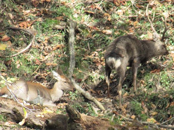 で、上の写真の背景の山には鹿。湿原にも3頭いたわよ。