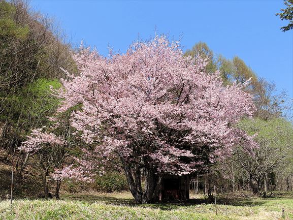 明川桜の里にあるという豆桜という大山桜を見に行ったのですが、これが悲しいことに枯死していまして。