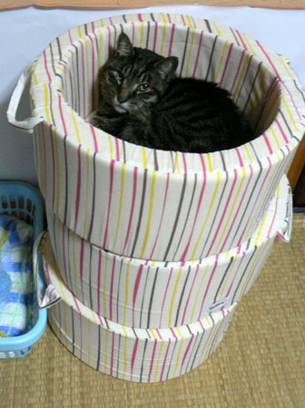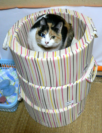 土曜日にいかにもいつもの夕方のフリをして、夕食を作っている私がいきなりとっ捕まえて篭にいれたもんだから、きゃっこらさんはそれを執念深く覚えているようです。