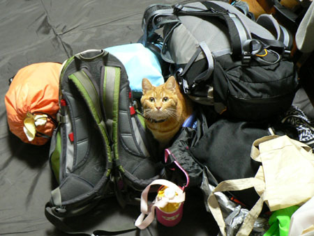 登山して、汗びっしょりで臭いたつようなダンナと私のリュックを放りなげておいたら、その真ん中にきゃっこらさんが埋まってました。