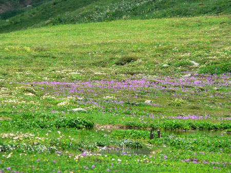 大池のハクサンコザクラはロープから遠い場所で群生してました。