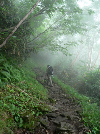 それでも、時々霧と雲が取れて、雪倉岳がくっきり見えたりして。