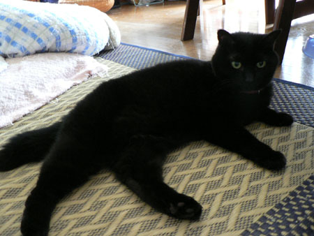 黒猫にい草ラグはよく似合う?