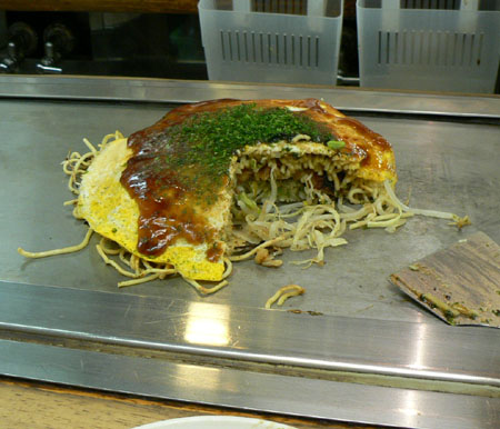 「お好み村」という屋台ばっかりいっぱい集まったような場所で食べました。