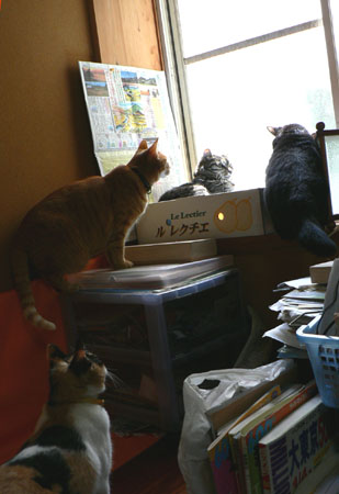 決して並んではいませんが、4匹同時にワンフレームに納まるのは極めて珍しいです。