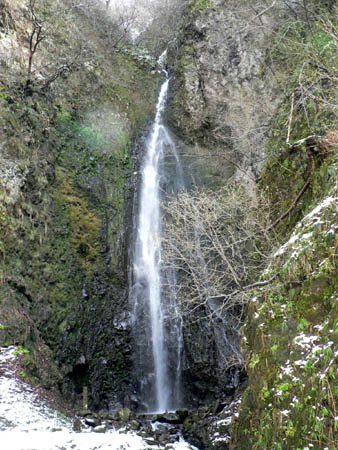 まず、せっかく柏崎に行くからと、まだ取材していない湧き水に水を汲みに行こうと、出壷の水という湧き水に行こうとしたのですが、場所がよくわからず、地元の親切なおばさんに道を尋ねてわざわざ自動車で先導していただいてまで行ったのに、どっつりと積もっていてとても危険で進めずあきらめ、それでは平成の名水百選にも選ばれた大出口の清水に行こうとしたら、県道が冬季閉鎖で進めず。