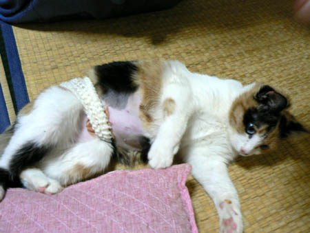 避妊手術といえば、おなかにメスを入れる手術なので、私としてはかなり心配しているんですが、動物病院的にはほとんど目をつぶってもできるくらい当たり前の手術なんでしょうねぇ。
