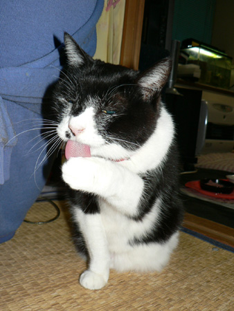 で、勝手な食事を終えて満足げにグルーミングしてらっしゃるカッパ姉ちゃんです。心配しすぎる飼い主はバカですか~。
