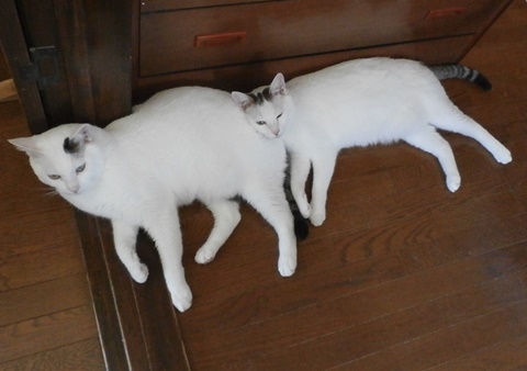 本日の八九。くそ暑いのにくっつきあって眠る仲の良さです。