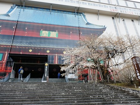 大はずれその1。輪王寺の門、平成の改修中。書き割りがバックの金剛桜なんて、今しかないでしょ~。