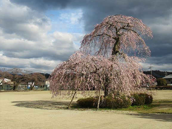下は、閉校になった小学校のグラウンドの真ん中に立つ桜。