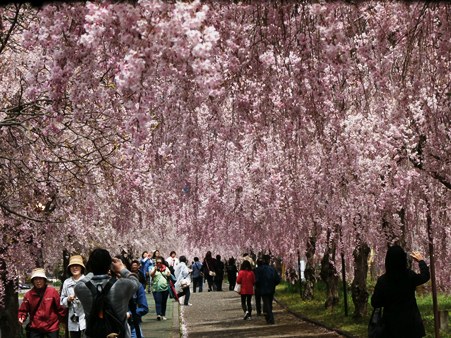下の写真は、日中線のしだれ桜並木のハイライト、桜のトンネルです。