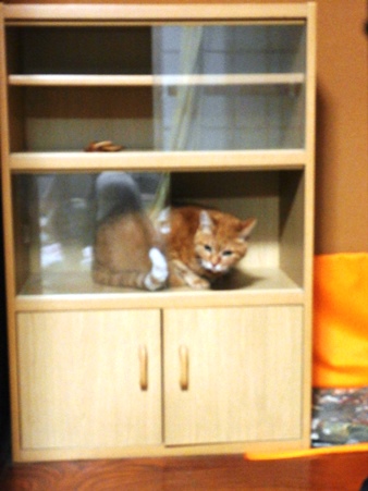 からっぽになった戸棚の中にちゃっかり入るきゃこちゃんでした。