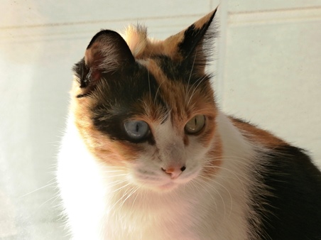 お日様の当たる窓辺てあったまるようになりました。そろそろ肌寒いやね、豆ちゃん。
