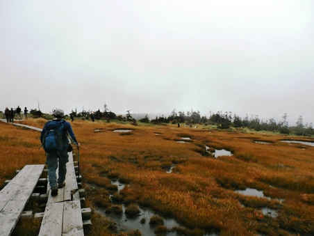 連休ということで、50台以上とめられそうな駐車場は満車だったし、山頂の木道のある場所なんか、平地の公園かしらん、と思うくらい人が多い状態でした。