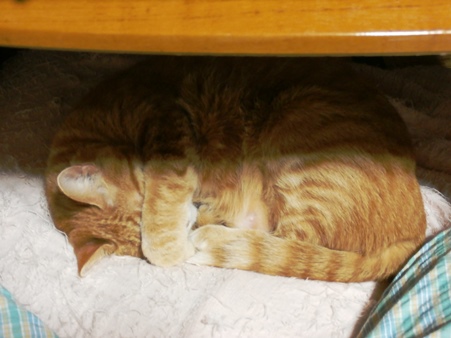 最近、きゃこちゃんがパソコンの机の下に潜り込んで寝ます。ここに来る時は、きゃこちゃん的に寒い時らしいです。20度以上あっても、寒いらしいのよね、きゃこちゃん。