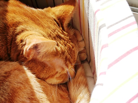 昨日は珍しくよく晴れた暖かい一日でした。ヒーターのついた部屋よりも、日当たりのいい二階の出窓のほうがあったかいらしく、きゃこちゃんはずっとそこで寝ていました。