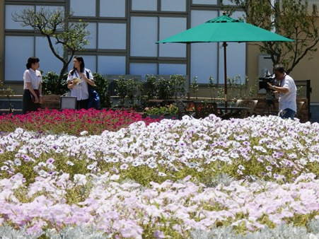 下写真はお花畑とたまたま取材に来ていたらしい地元テレビ局のクルーです。