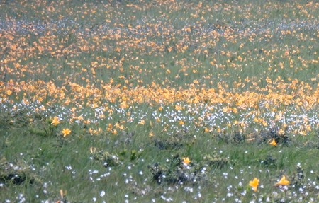 ちょっとかすんでしまいましたが、キスゲの群落。ワタスゲもちらほら。