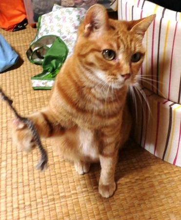 紐が大好きで、紐をくわえて持ってきては遊べとせがむきゃこちゃんです。