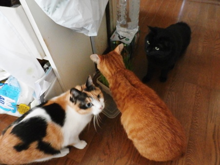 猫草を買ってきたては、奇跡のスリーショットが写せます。喧嘩しないで食べろよ。
