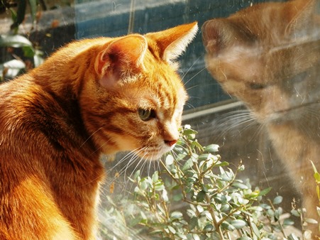 今日はよく晴れて、窓辺もぽかぽかでした。きゃこちゃん、外になにかいたかな~?
