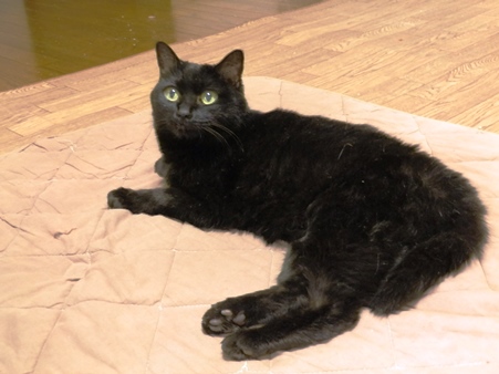 掃除のためにこたつをどけたら、ミユキちゃんが掘り出されました。いきなりあかるくなったので、びっくりしてます。