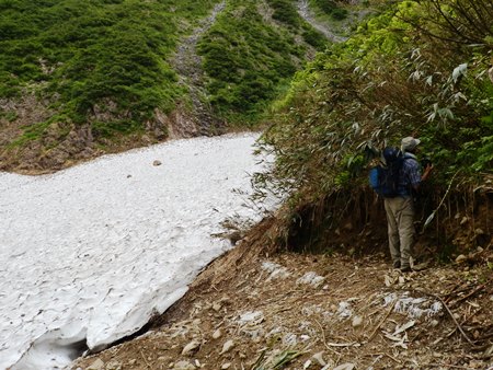 ピッケルとか持っていたから、経験のある人だと思うんですが、事故もあった雪渓なので、ちょっと怖かったです。