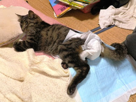 サイズ確認のために買ったSSのおしめが大きかったですぅ。ま、100均のおしめなので惜しくないです。やっぱりやせ細ったムチャにはSSSサイズらしいです。