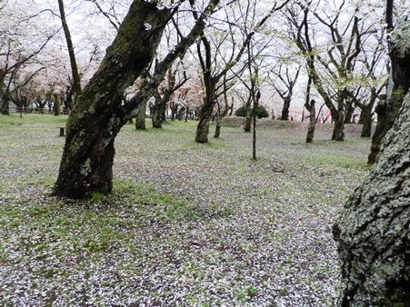 村松公園はもう散り始めていて、屋台もあまりの寒さと雨で閉店している場所も多くてさみしい限りでした。でも、散った桜の花びらがとてもきれいでしたよ。