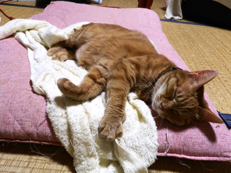 まだまだ寒い、ときゃこちゃんが申します。ストーブの前でのんびりお昼寝して、幸せそうです。