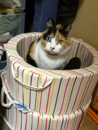 豆ちょには珍しく猫ベッドにちょこんと入っていました。うむ、かわいいぞ。