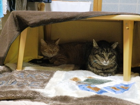 ちゃんと1階のこたつには猫どもが入ってくれて、母はたいそう満足です。