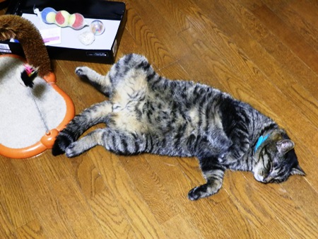 暑いので、猫の開きになっているムチャです。