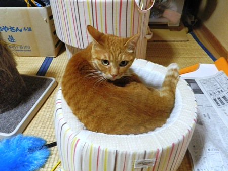 きゃこちゃん、猫ベッドのつかい方間違ってますぅ。