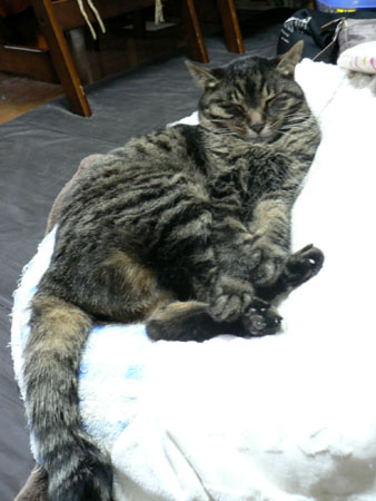 ヒーターの前でぬくぬくしているムチャです。